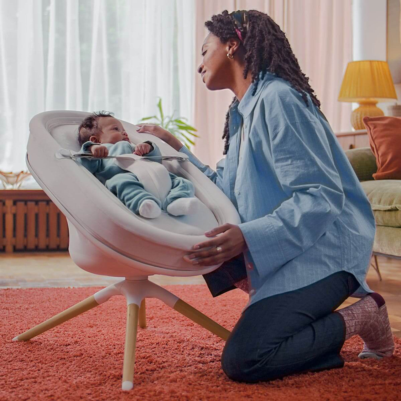 Smart bouncer and bassinet gives baby freedom to play, soothe and snooze through the day, and sleep through the night.